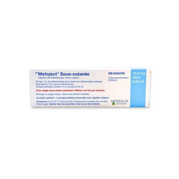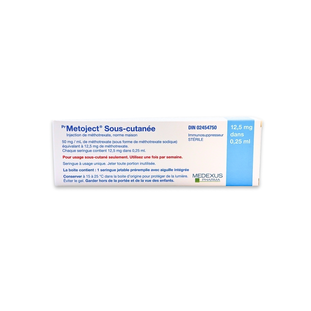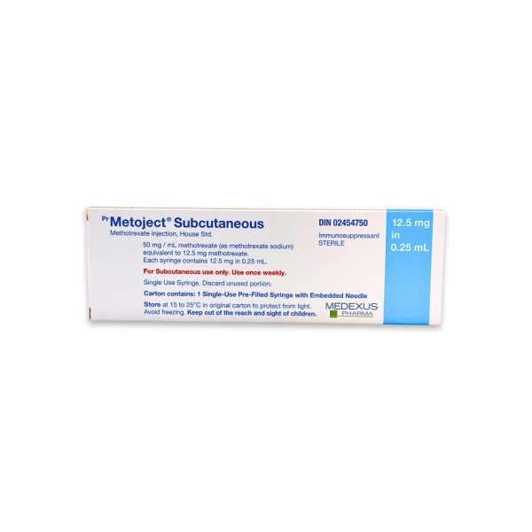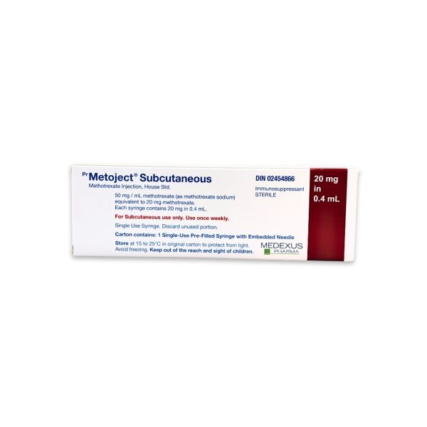 Metoject (Methotrexate) is typically given once weekly. However, your doctor or pharmacist will suggest a schedule that is appropriate for you. Important: Follow the instructions on the label. Do not use more of this product, or more often, than prescribed. If you forget a dose, contact your pharmacist. Select a day of the week when you are most likely to remember to take METOJECT and take it on that same day each week. While you are using METOJECT, your doctor may want you to drink extra fluids so that you will pass more urine. This will help the drug to pass from the body, and will prevent kidney problems and keep your kidneys working well. WARNING: It should be used with caution in patients having current infections, renal (kidney) diseases or taking any anti-inflammatory medications. In addition to its desired action, Metoject (Methotrexate) may cause some side effects, notably: It may cause nausea, vomiting, infections, burning sensation of the skin, headache, disturbances in blood cell counts. Contraindications: History of severe hypersensitivity to methotrexate or any component of the formulation, breastfeeding, pregnancy, renal (kidney) diseases. Taking Metoject (Methotrexate) during pregnancy may be harmful for the baby. Women of childbearing potential should use an effective contraceptive method. Pregnant women should not use this product. If you're planning a pregnancy or becoming pregnant, contact your family doctor. A treatment with Metoject (Methotrexate) requires regular monitoring by a doctor. Be sure to see your doctor for all regularly scheduled appointments.Metoject (Methotrexate)